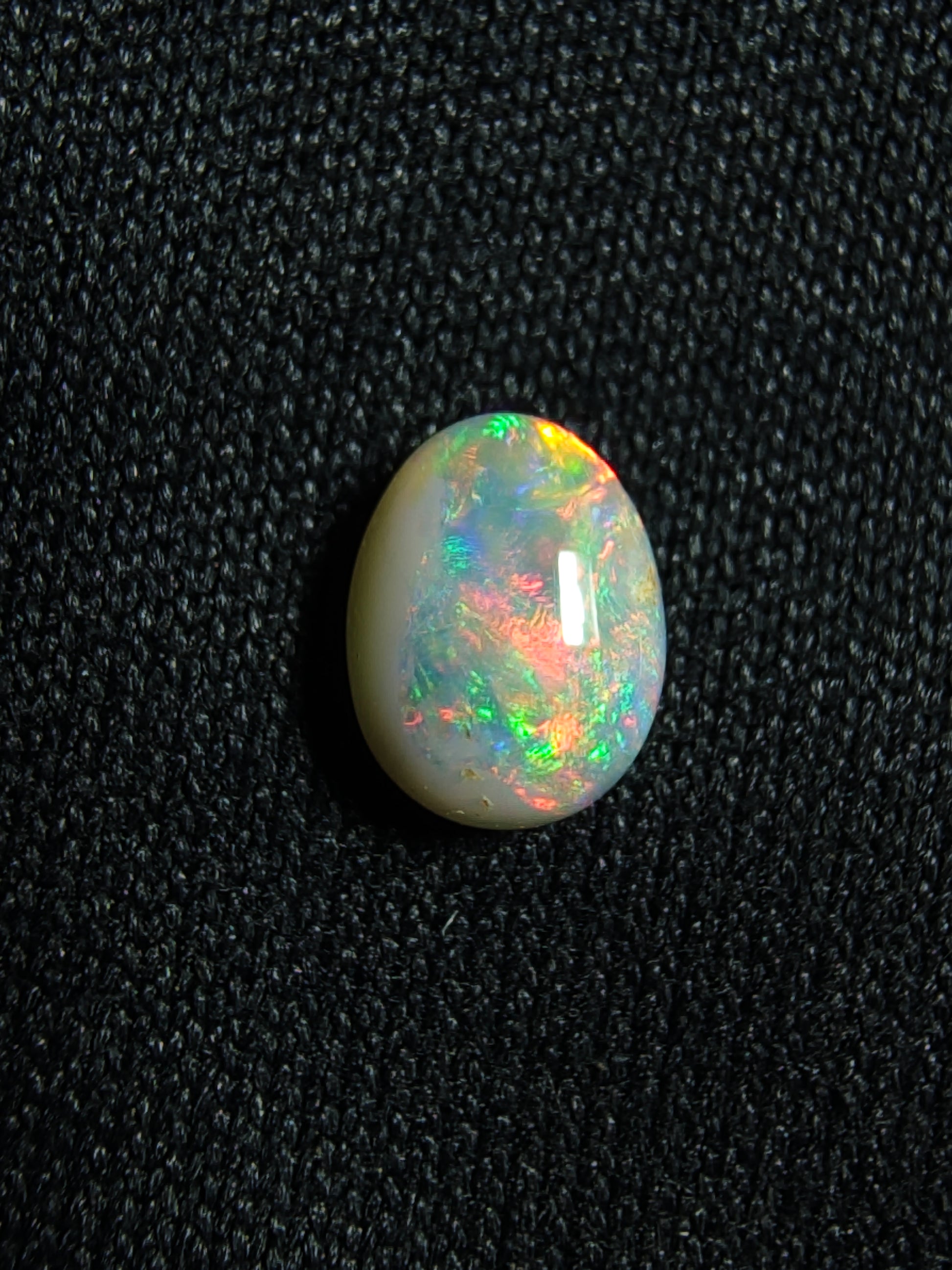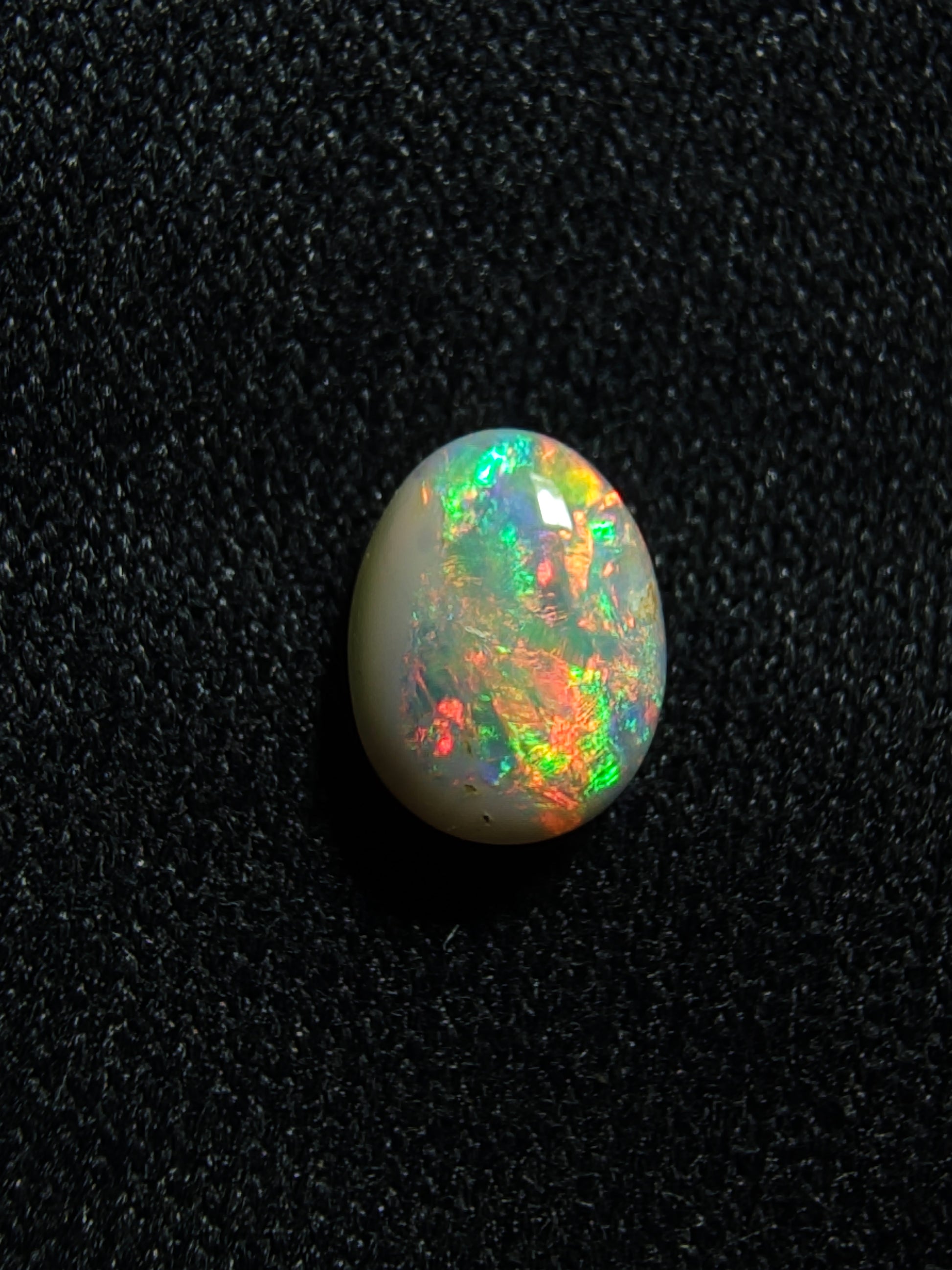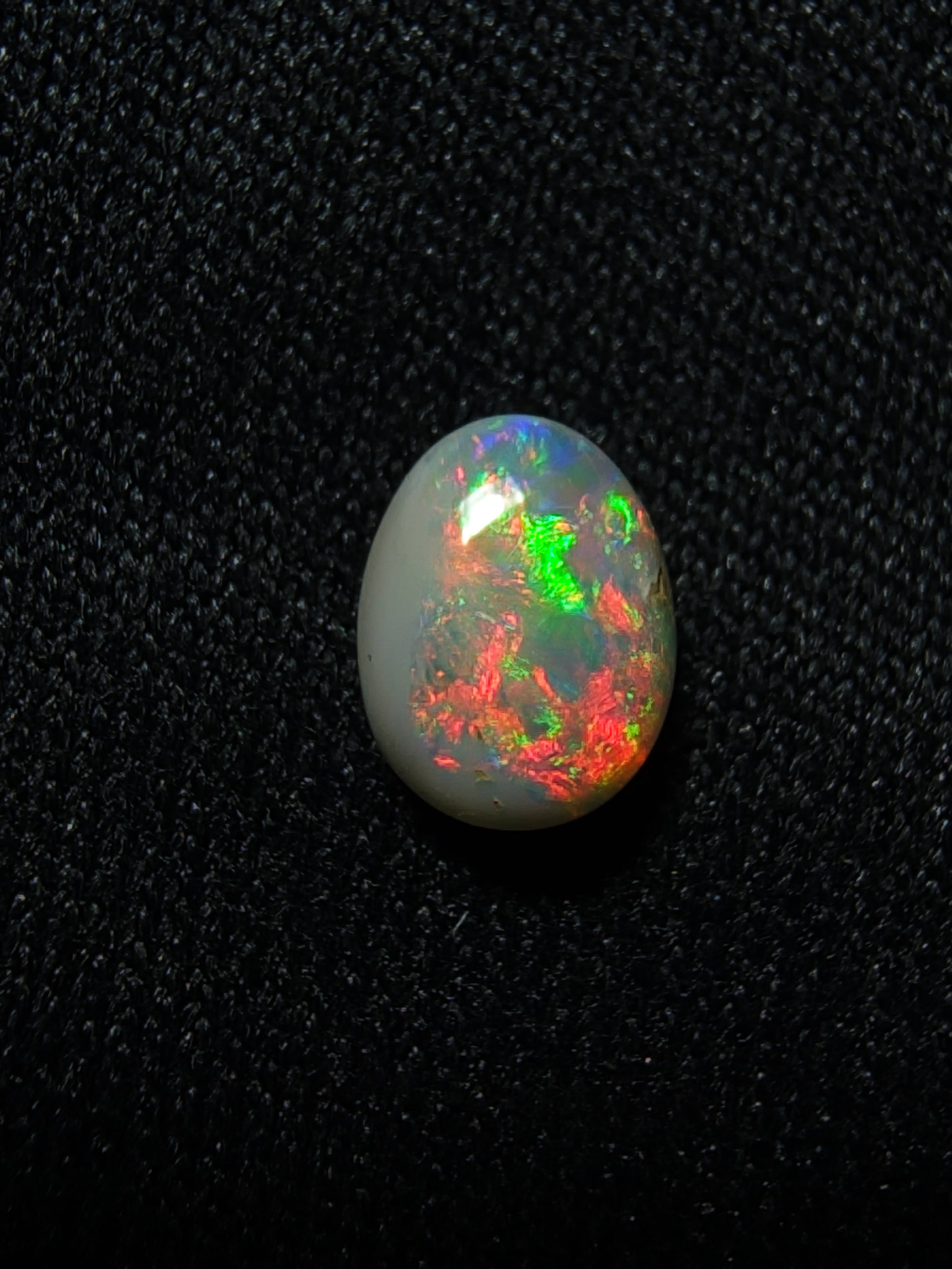 Sourced from Australia’s most famous opal fields and cut as a natural, untreated cabochon, this gem holds a colour pattern that’s both bold and refined. Whether destined for a fine jewellery setting or kept as a collector’s stone, its intense fire makes it a rare find in a smaller carat size.