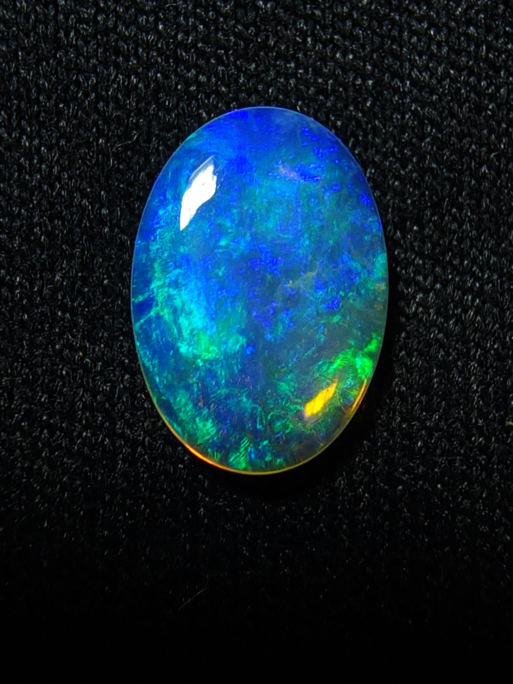 This this stone has vivid blue depths and flashes of pastel green, its a 0.70ct crystal opal from Lightning Ridge captures the calm and mystery of ocean waves. The oval cabochon cut highlights its natural play of colour, making it an ideal centerpiece for a custom design or a meaningful October birthstone keepsake.