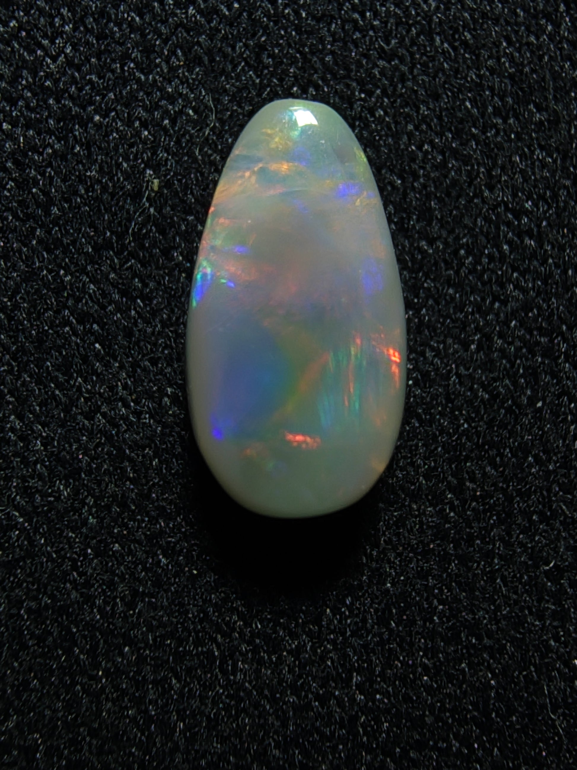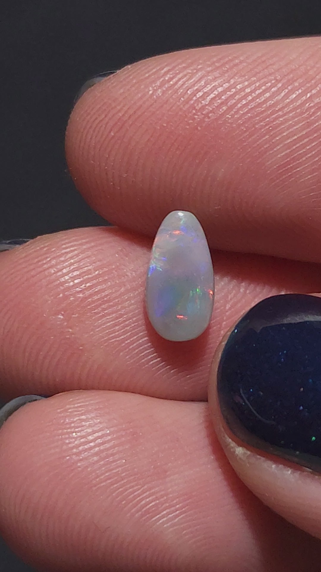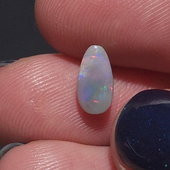 This 0.70ct dark opal from Lightning Ridge shimmers with fiery reds and cool blues, accented by flashes of violet, green, yellow and orange. Its beauty would shine in a pendant or ring or make a thoughtful gift as an October birthstone.