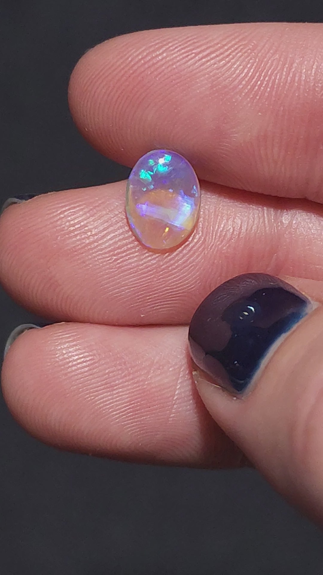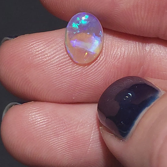 This 1.10ct solid crystal opal comes from Lightning Ridge, NSW, Australia—home to some of the most beautiful opals in the world. With glowing flashes of electric blue and violet, this natural gemstone has a calm, shifting colour that catches the light in a truly special way.